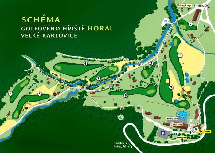 Golf Horal Velké Karlovice má děvet jamek a je umístěno v kopcovitém terénu Beskyd, kde můžete prožít netradiční golfové zážitky.